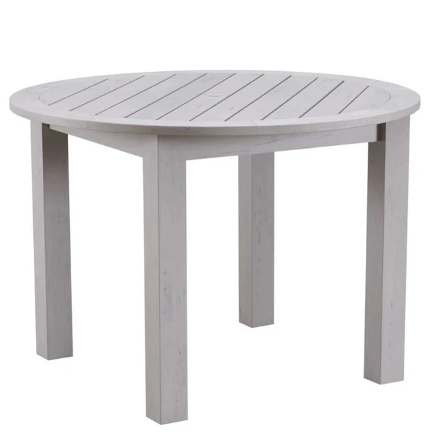 The Winawood Round Dining Table combines classic style with modern durability, making it ideal for outdoor dining and entertaining. Crafted from a high-performance recycled polymer, it offers the natural look of wood while being completely resistant to rot, rust, fading, and warping. Designed to be left outside all year round, it requires minimal upkeep and maintains its appearance season after season. Its practical round shape comfortably accommodates up to four side chairs and includes a built-in parasol hole for added shade on sunny days, making it a versatile addition to any garden or patio.